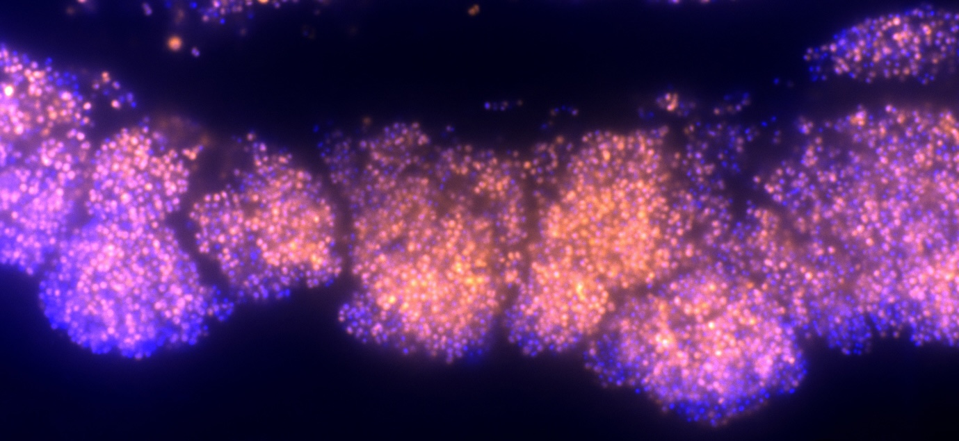 To detect microorganisms in clinical samples, we combine molecular and microscopic methods. Using fluorescence in situ hybridization (FISH) and PCR amplification of the 16S rRNA gene, bacteria — including those in culture-negative cases — can be directly detected and visualized in the sample.